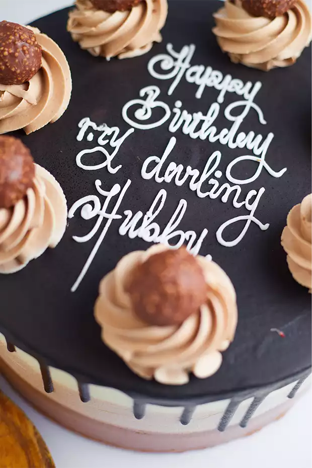 A sophisticated coral-colored cream cake that combines soft texture and eye-catching style — perfect for chic celebrations.: Inspired by the luxurious Ferrero Rocher — nutty, creamy, and pure indulgence.