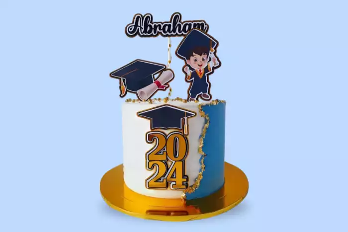 Celebrate graduation in the sweetest way! This vibrant graduation cake features a cap, scroll, and topper. It is perfect for marking a proud milestone. Add their name for a personal touch.Send a freshly baked cake delivered across 30+ cities in Nigeria.Chat with us on WhatsApp for flavor recommendations or order support. [Chat Now: +234 9086666333]