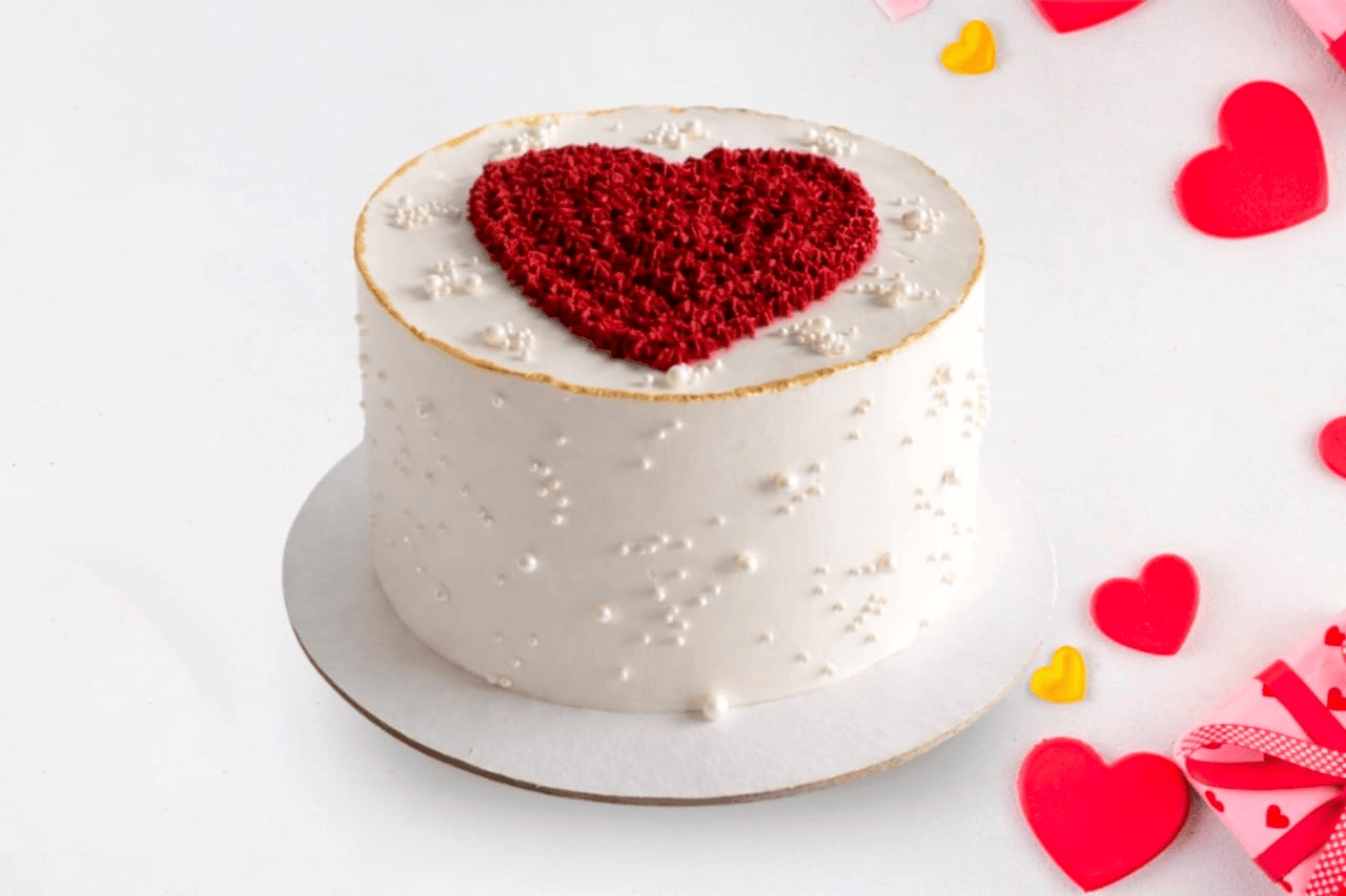 A sophisticated and minimalist design, this cake is covered in crisp frosting with a thin gold-painted rim around the top edge.The sides and top are delicately adorned with white edible pearls of varying sizes, arranged in a scattered, ethereal pattern. This cake is elegant and delicious.