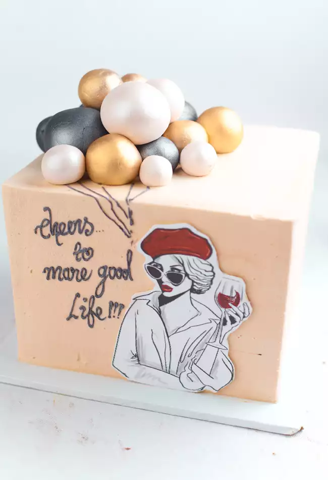 The Wine Lady is a thinking-of-you cake that stands out as a true work of art, perfect for those in search of something uniquely captivating and creative. This cake is not just a treat for the palate but also a feast for the eyes, combining imaginative design with exquisite taste.